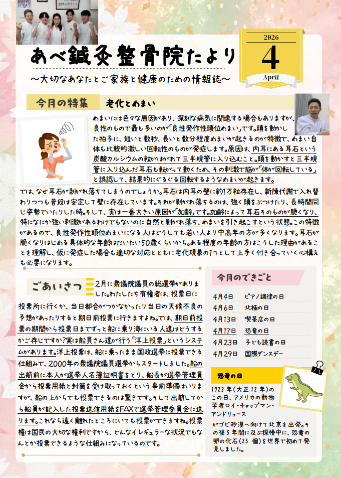 こんにちは!あべ鍼灸整骨院若木です!!ニュースレター前半になります!!