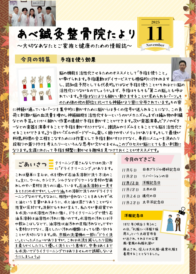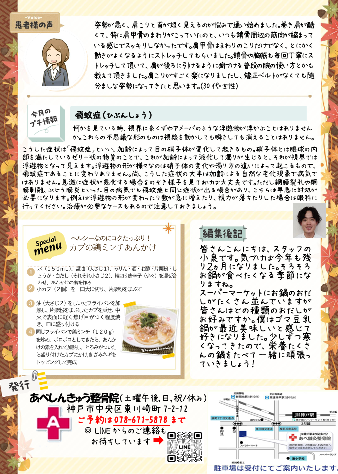 11月のニュースレター配信 | あべ鍼灸整骨院 | 神戸市・神戸駅・東川崎町