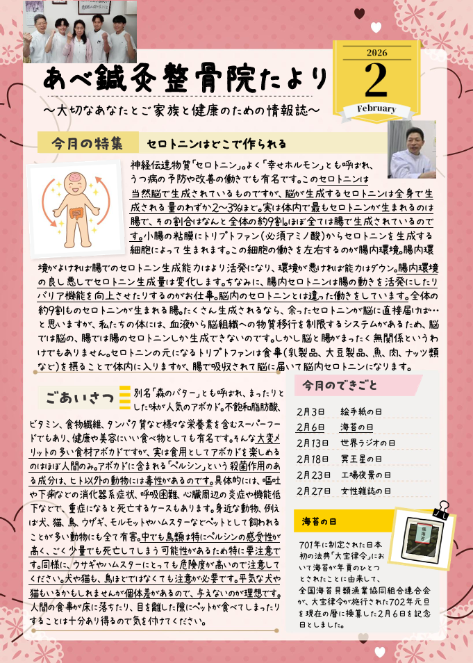 2月のニュースレター配信 | 神戸市・神戸駅・中央区 あべ鍼灸整骨院 MENU